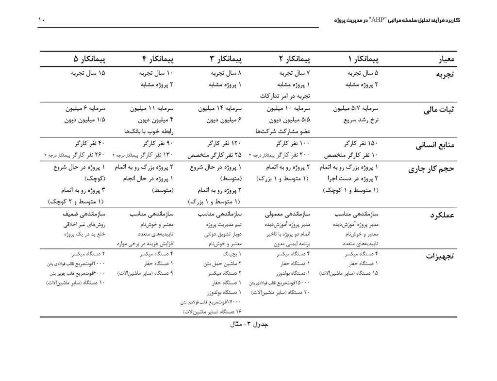 تکههایی از کتاب کاربرد فرآیند تحلیل سلسله مراتبی “AHP” در مدیریت پروژه