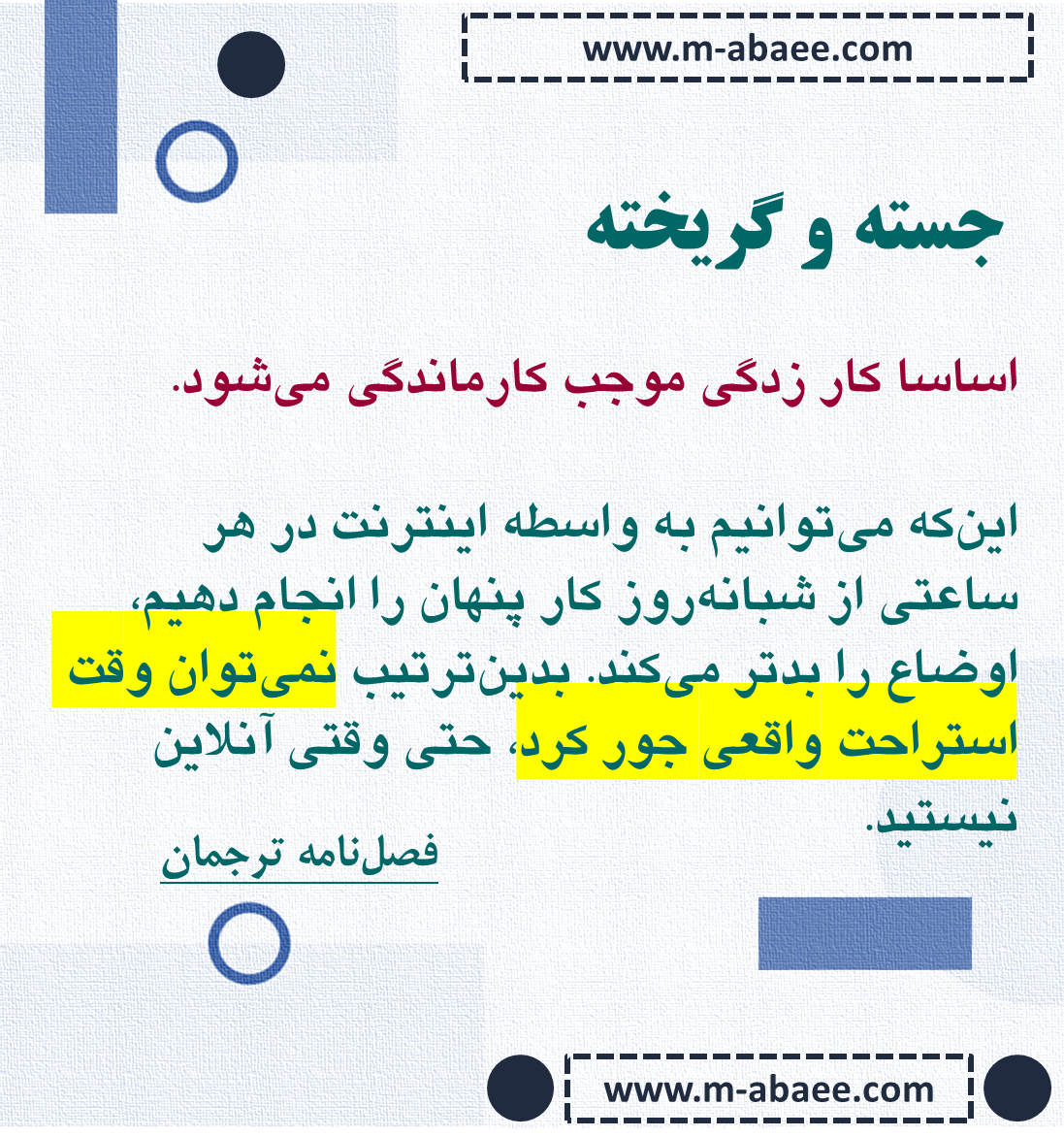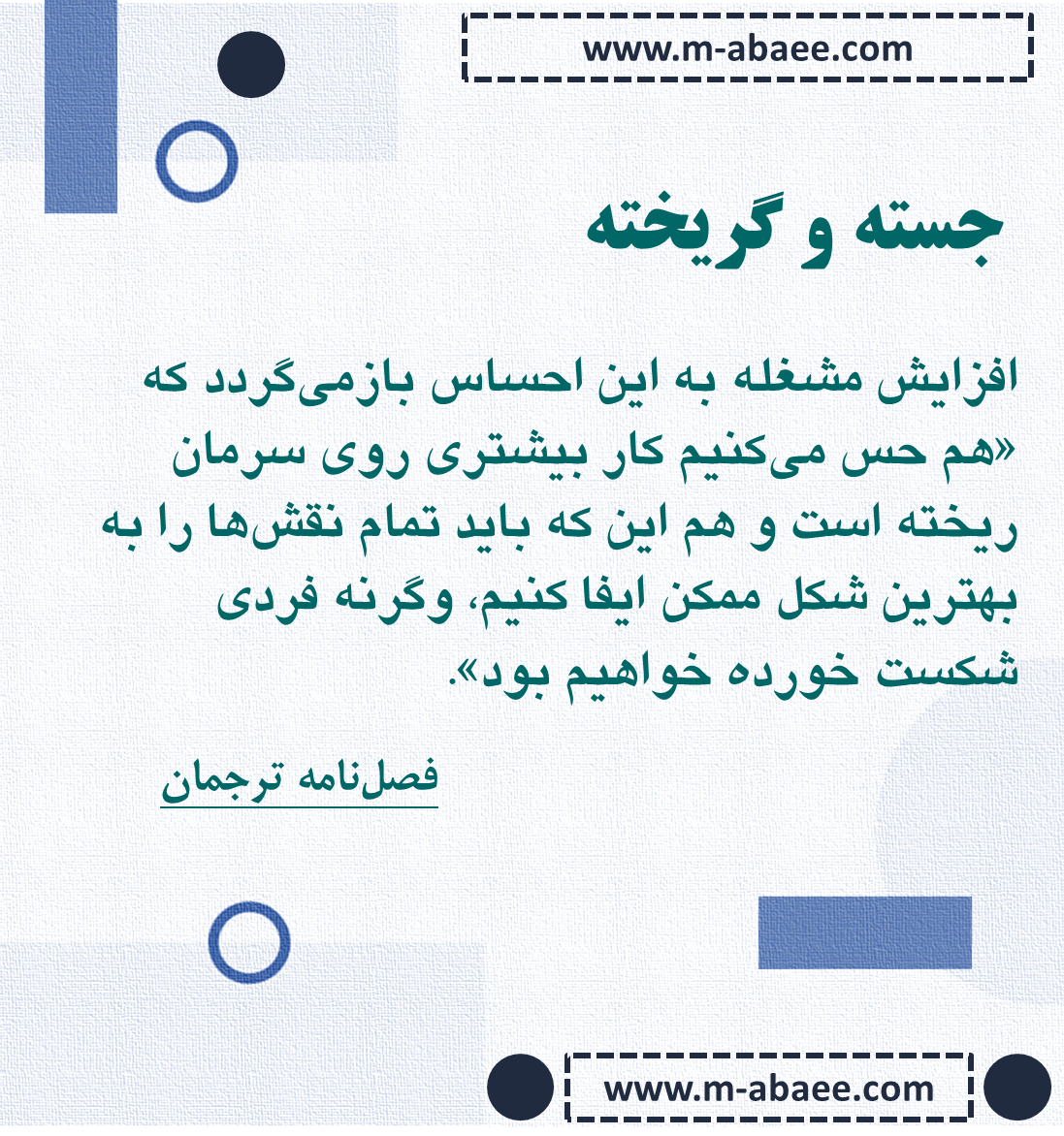 برگرفته از فصلنامه ترجمان – شماره ۱۹ (چرا هیچ وقت به اندازه کافی وقت نداریم؟) جو پینسکر – هاتف شفیعینسب یکی از گلایههای ثابت قرن ۲۱ این است که زندگی امروز نسبت به گذشته پرمشغلهتر است، اما این موضوع در زندگی برخی افراد حقیقیتر [یا پررنگتر] مینماید. حس مشغله، ظاهرا همگانی نیست و نمیتوان […]
