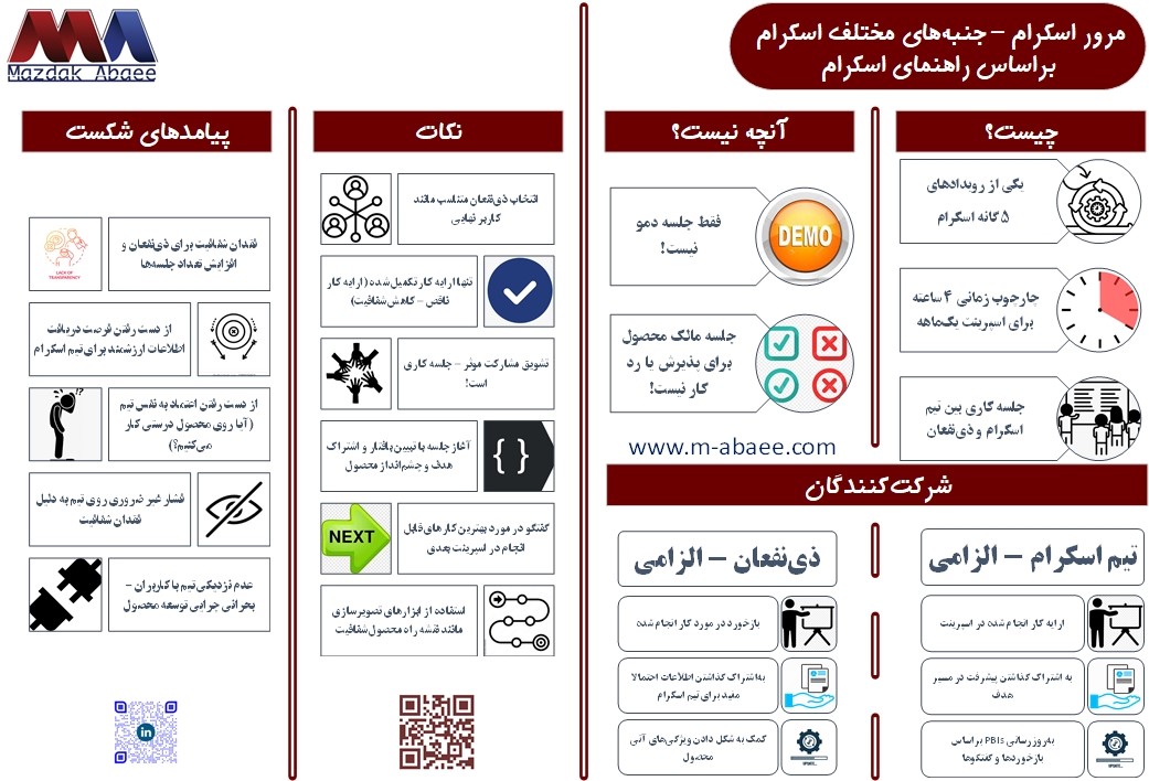 مجموعه ۱۶ گانه «مقدمهای بر اسکرام» از وبسایت www.responsiveadvisors.com، به طور خلاصه این چارچوب چابک را معرفی میکند. در هر بخش (پست) یک یا چند جنبه کلیدی اسکرام تشریح شدهاست. آیا مرور (بازبینی) اسپرینت در تمام اسپرینتها موضوعیت دارد؟ برای این رویداد چه چیزهایی باید آماده کرده باشیم؟ مرور (بازبینی) اسپرینت چیست؟ در این پست […]